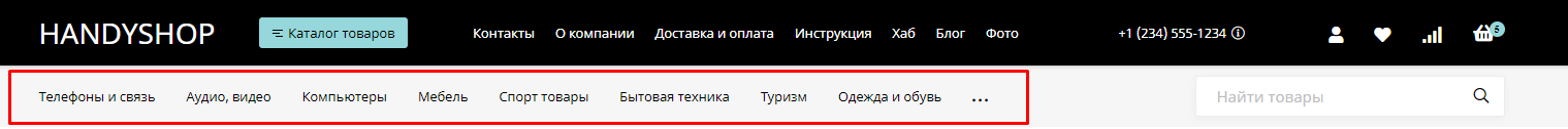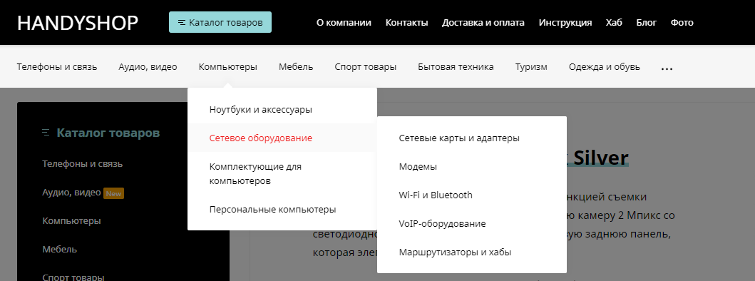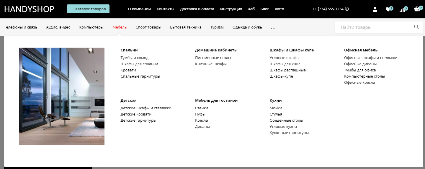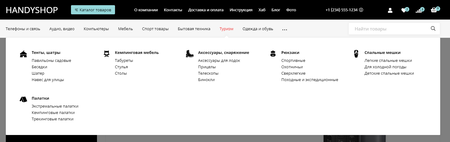 6. Для категорий есть возможность вывода баннера в выпадающем меню вида "С картинками", "Развернутое без иконок" или "Развернутое с иконками":