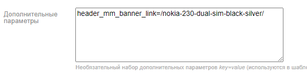8. На баннер можно назначить ссылку, для этого в настройках категории вставьте с новой строки параметр header_mm_banner_link=ссылка в опцию "Дополнительные параметры":