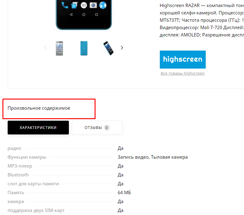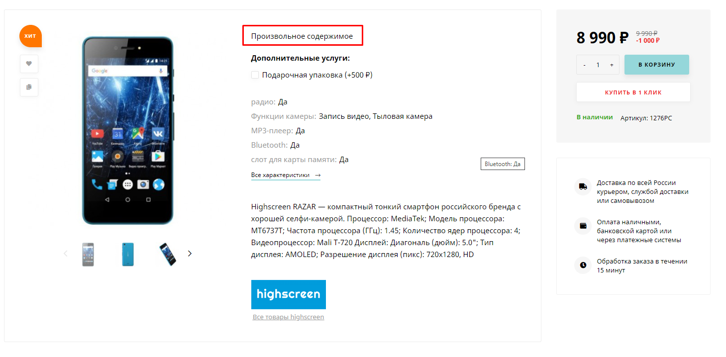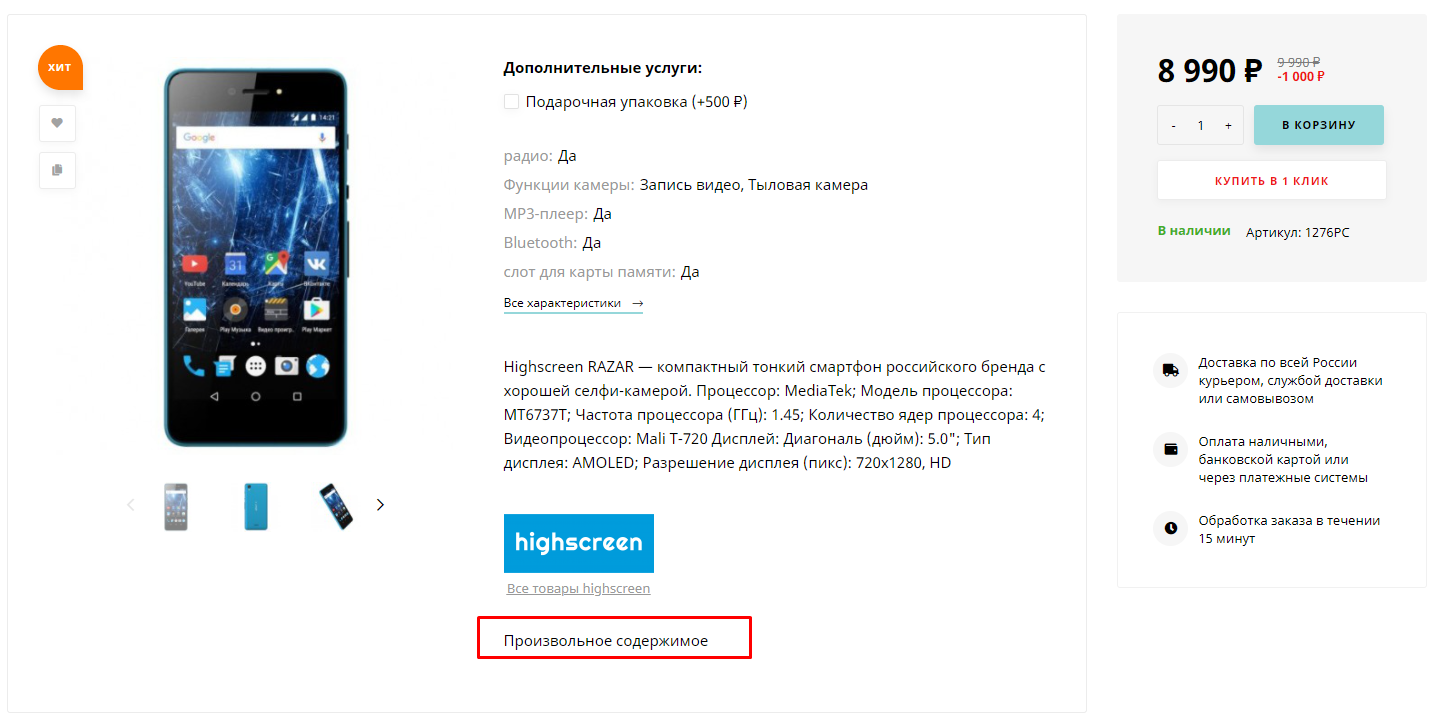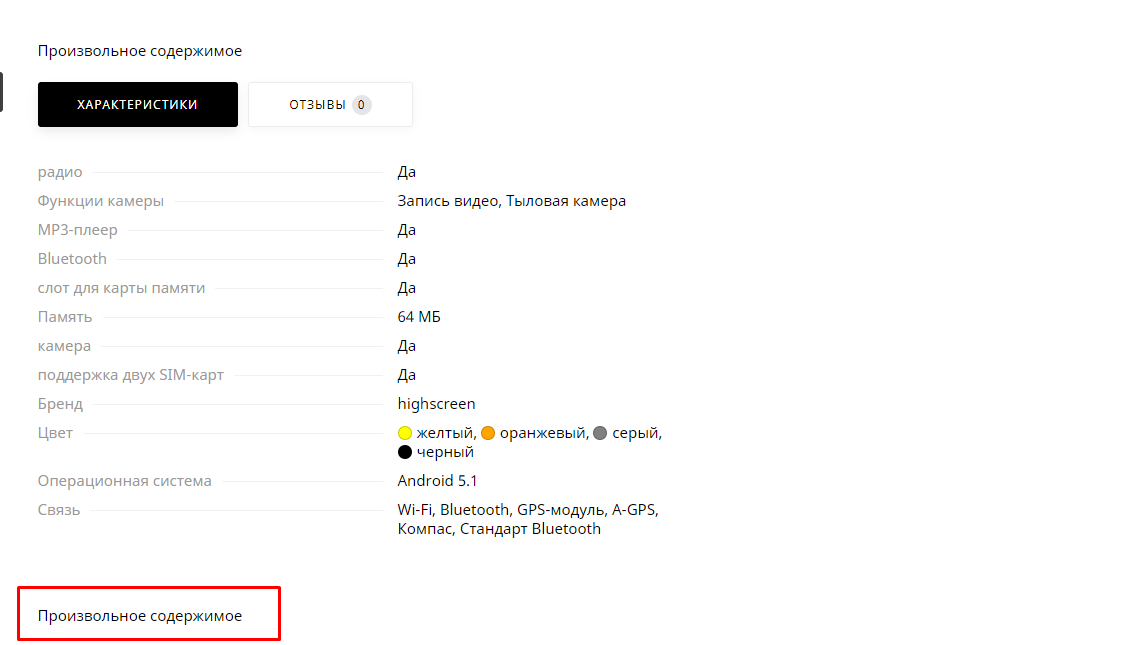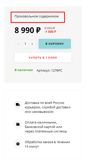 Карта блоков для произвольного содержимого в карточке товара