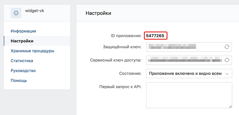 3. Переходим во вкладку "Настройки" и копируем идентификатор приложения: