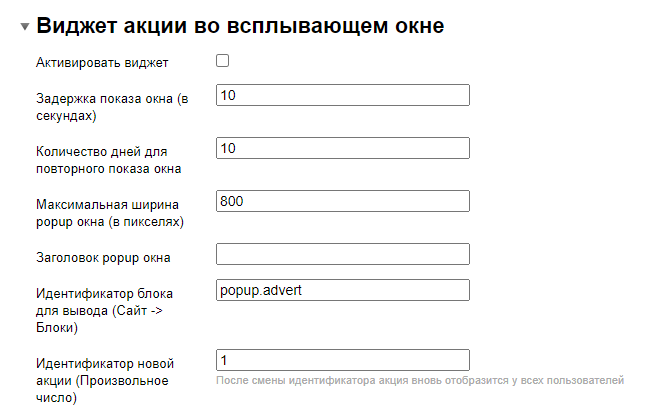 Идентификатор новой акции (Произвольное число). При смене идентификатора сообщение будет вновь показано всем пользователям (новая акция).