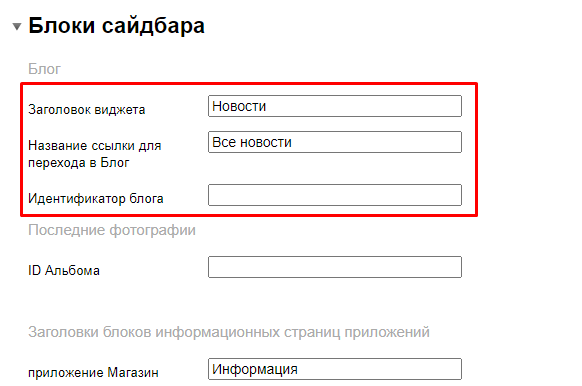 3. Если необходимо вывести последние посты только одного определенного блога, заполните опцию "Идентификатор блога". Идентификатор блога можно узнать по инструкции.