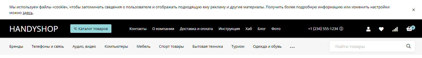 Настройки для инфо-сообщения находятся в разделе Шапка сайта -> Информационное сообщение: